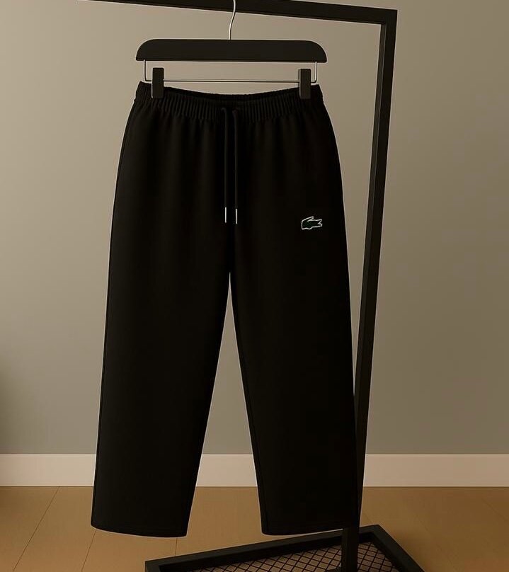 Pantalon de sport noir chic, idéal pour un confort décontracté. Matériau durable avec taille élastique et cordon de serrage. Parfait pour les activités quotidiennes ou le sport.