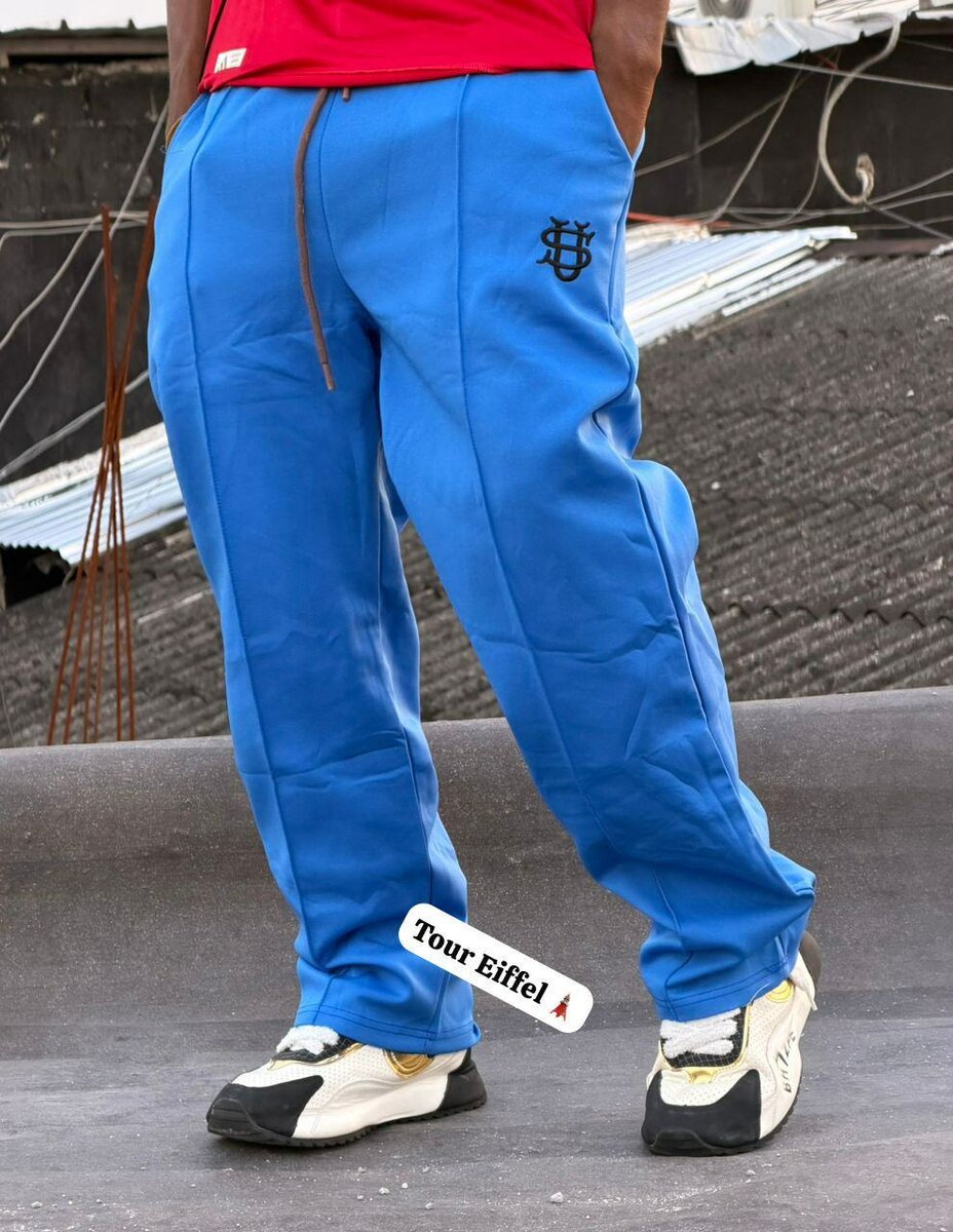 Pantalon de jogging bleu pour homme, confortable et élégant. Idéal pour le sport ou les moments de détente. Conception moderne et ajustée.