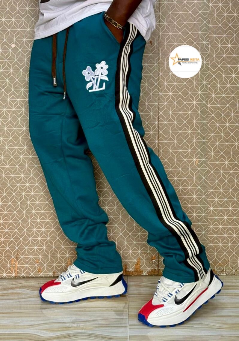 Optez pour ce pantalon de survêtement tendance avec bandes latérales. Idéal pour le sport ou une sortie décontractée. Design moderne et confortable.