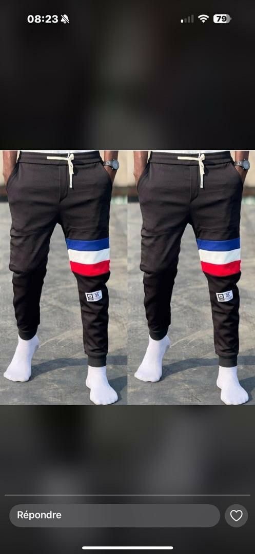 Découvrez notre pantalon de survêtement à triple bande colorée, alliant style et confort. Parfait pour des looks décontractés ou pour le sport. Sa ceinture élastique assure un ajustement parfait.