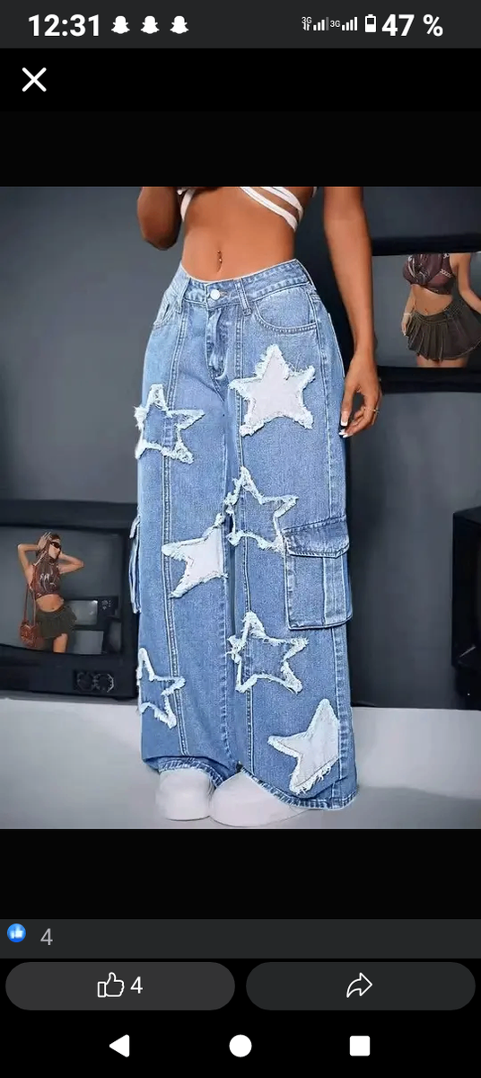 Adoptez un style unique avec ce pantalon en jean orné de motifs étoiles. Parfait pour une tenue décontractée et tendance. Idéal pour les sorties urbaines ou les événements décontractés. Sa coupe ample et confortable assure liberté de mouvement et style.