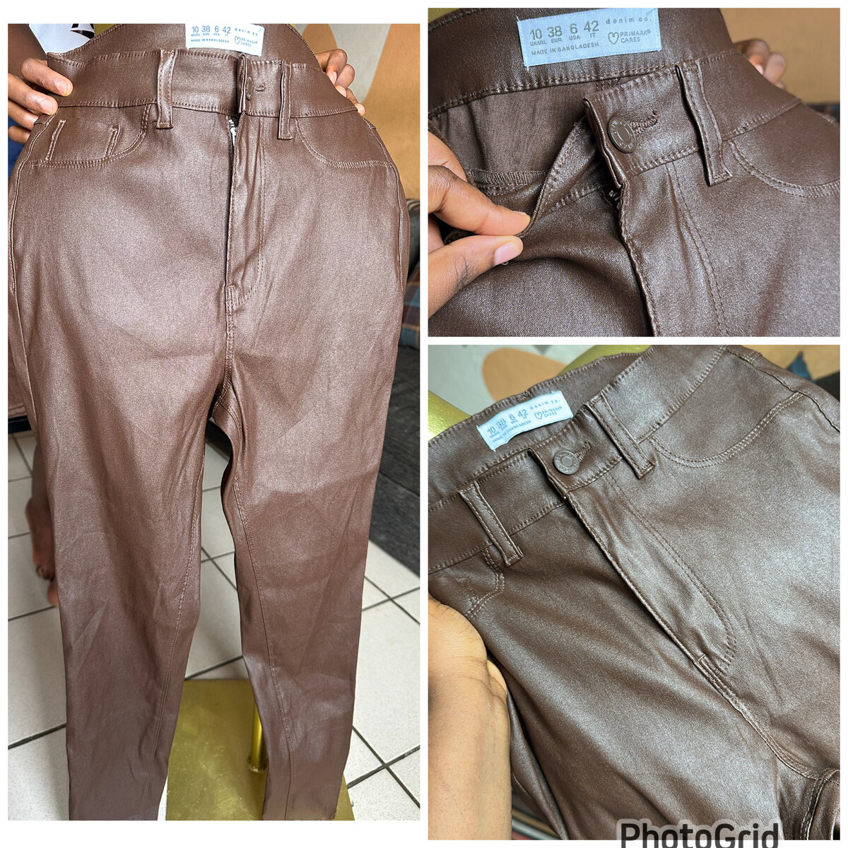Découvrez ce pantalon taille haute en similicuir marron, idéal pour ajouter une touche moderne et élégante à votre garde-robe. Confortable et stylé, il est parfait pour les sorties casual ou professionnelles. Associez-le avec un haut chic ou un t-shirt décontracté pour un look polyvalent.