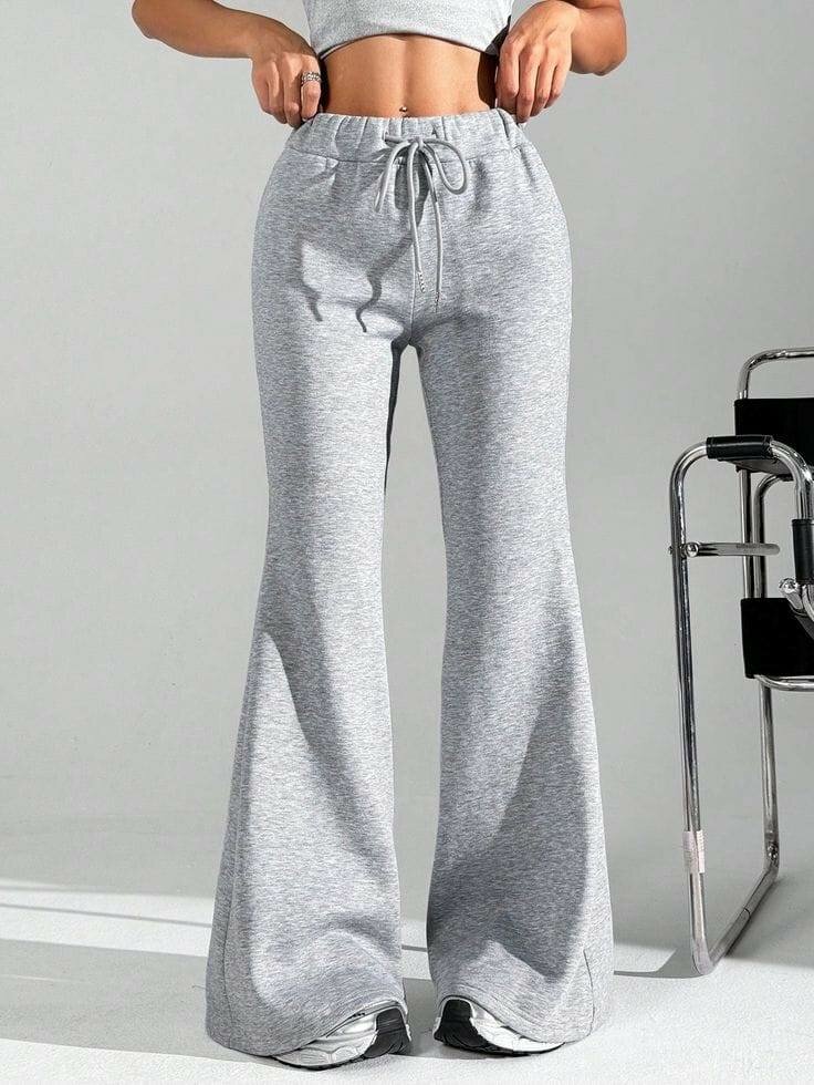 Ce pantalon évasé gris est parfait pour un look décontracté et tendance. Fabriqué dans un tissu doux et extensible, il est idéal pour un confort quotidien. Son design taille haute avec cordon de serrage le rend pratique et ajustable. Parfait pour la maison ou une sortie entre amis, ce pantalon s'adapte à toutes les occasions.