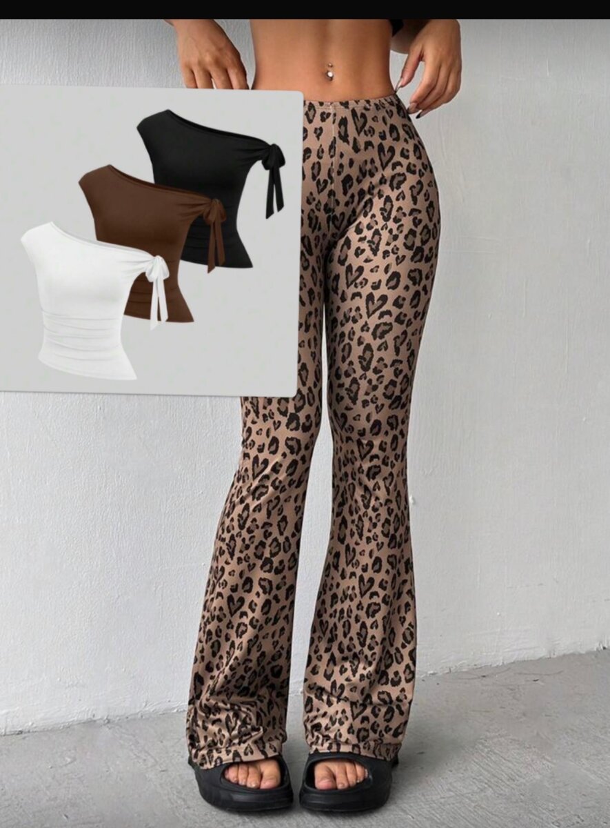 Découvrez ce pantalon évasé au motif léopard tendance, idéal pour une tenue chic et moderne. Parfait pour une soirée ou une sortie décontractée. Associez-le à un top uni pour un look équilibré et stylé. Confortable et léger, il souligne votre silhouette avec élégance.
