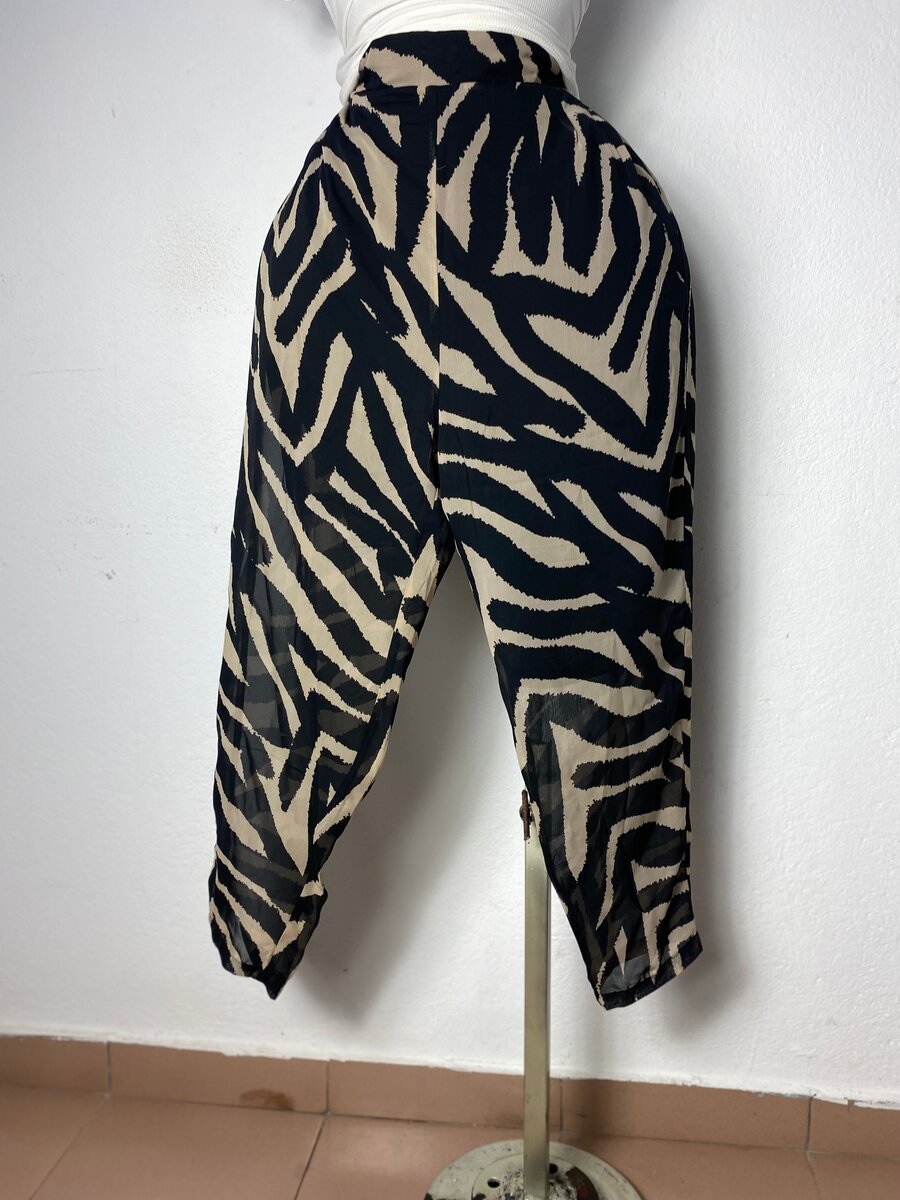 Découvrez ce pantalon imprimé zèbre, idéal pour une tenue audacieuse et stylée. Léger et confortable, il est parfait pour les sorties décontractées ou une touche de glamour en soirée. Associez-le avec un top uni pour un look équilibré et tendance.