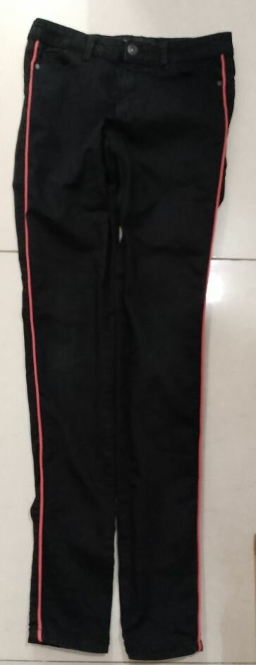 Pantalon jean noir avec une bande rouge de chaque côté