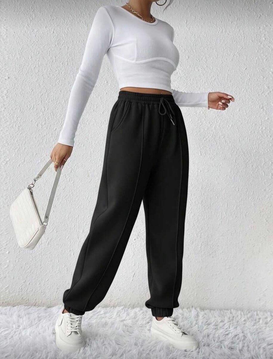 Découvrez notre pantalon de jogging noir pour femme, idéal pour un look décontracté et stylé. Fabriqué avec des matériaux confortables pour garantir un usage quotidien agréable. Parfait pour le sport ou un style urbain.