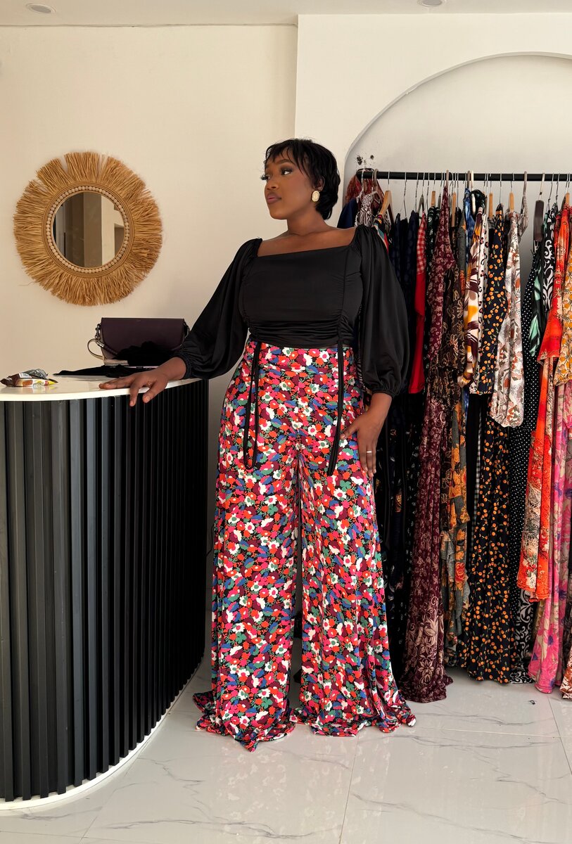Optez pour ce pantalon large à motifs colorés pour une touche vibrante et élégante. Conçu avec un ajustement confortable et une taille haute flatteuse, c'est l'addition parfaite pour toute garde-robe moderne. Idéal pour les sorties décontractées ou les événements stylés. Associez-le à un haut chic pour un look impeccable.