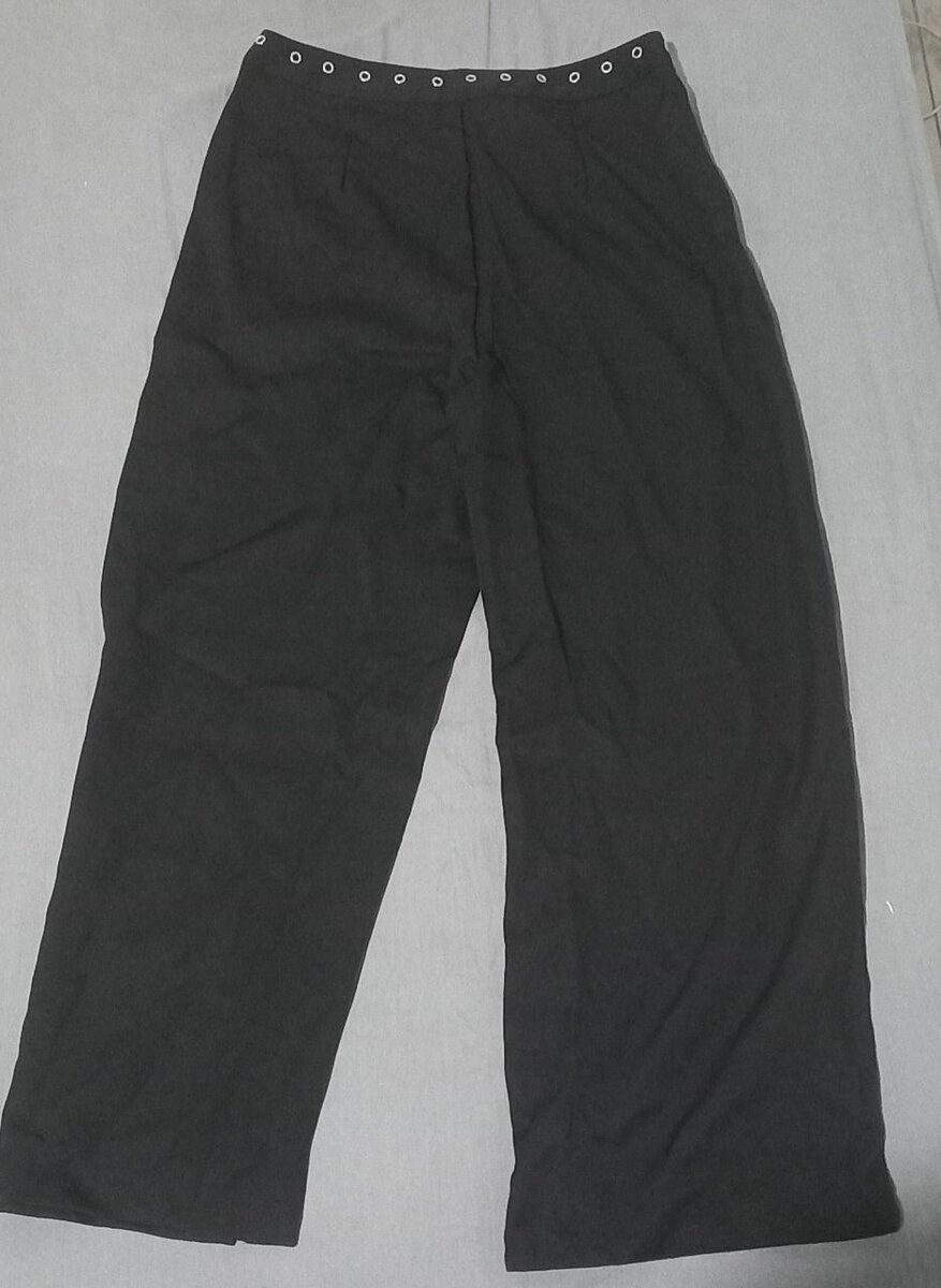 Optez pour ce pantalon large noir, parfait pour un look chic et confortable en toute occasion. Avec des œillets élégants à la taille, c'est le choix idéal pour une tenue décontractée ou professionnelle.