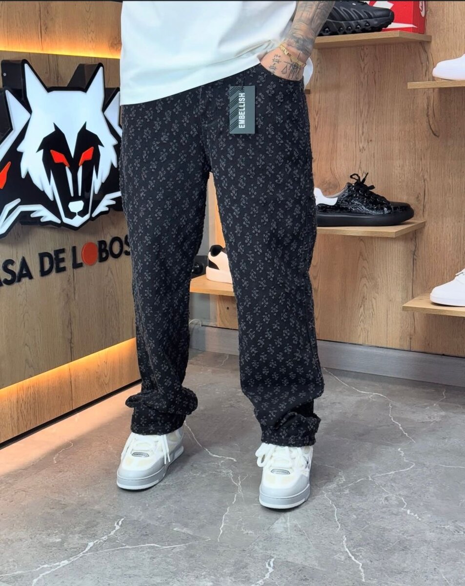 Ce pantalon noir à motifs est idéal pour un look casual et moderne. Confortable et stylé, il se porte facilement au quotidien. Parfait pour les sorties ou une journée décontractée.