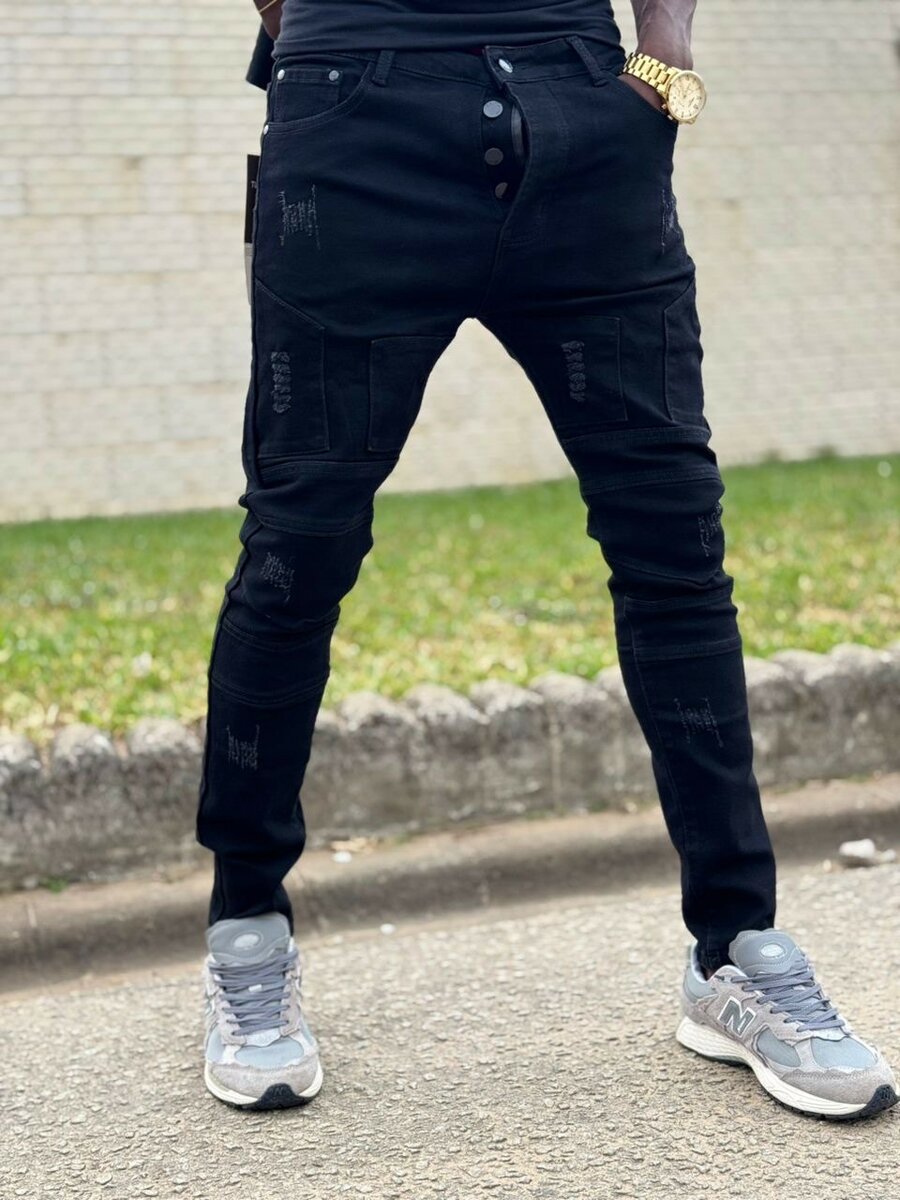 Pantalon noir tendance pour homme, coupe slim pour un look moderne et élégant. Idéal pour toutes les occasions, il offre un confort optimal et un style affirmé.