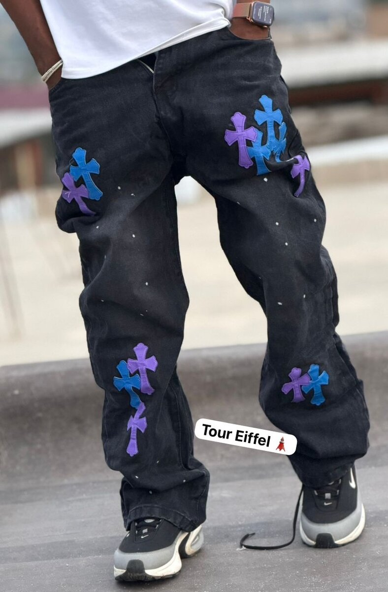 Découvrez ce pantalon streetwear tendance avec des broderies colorées uniques. Fabriqué pour le confort et le style, il est parfait pour un look décontracté et original. Associez-le avec vos sneakers préférées pour un impact maximal !