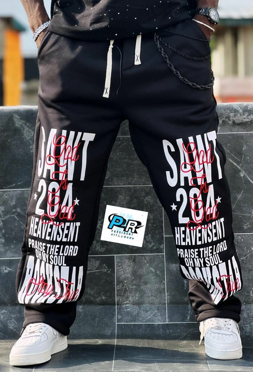 Découvrez le pantalon streetwear pour homme, idéal pour un look tendance et décontracté. Conçu avec des inscriptions audacieuses et un design unique, il est parfait pour exprimer votre style. Portez-le pour toutes vos sorties urbaines!