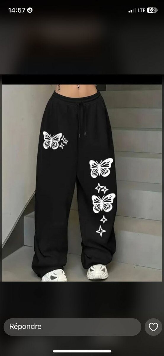 Pantalon noir papillon motif