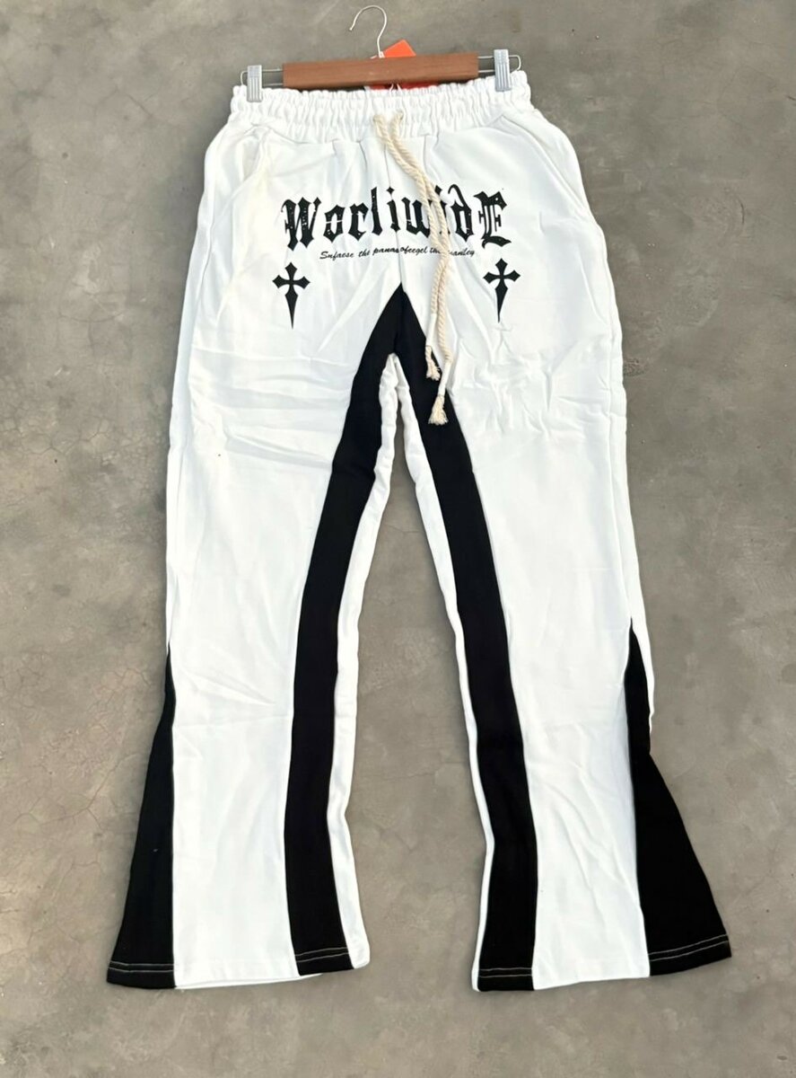 Optez pour un style streetwear avec ces pantalons Worldwide blancs et noirs. Confortables et branchés, ils sont parfaits pour un look décontracté. Idéaux pour vos sorties urbaines ou relax à la maison.
