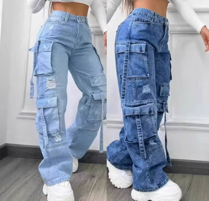 Découvrez ces pantalons cargo en denim pour femmes, parfaits pour un style audacieux et moderne. Avec leurs poches multiples et leur coupe décontractée, ils s'adaptent à toutes les occasions décontractées. Idéal pour se démarquer avec un look urbain.
