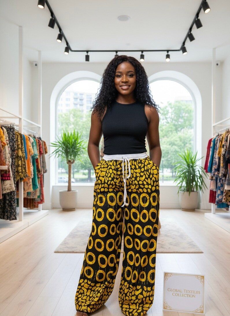 Ajoutez une touche d'élégance à votre garde-robe avec ces pantalons larges imprimés. Idéaux pour un look chic et décontracté, ils offrent confort et style avec leurs motifs africains uniques. Parfaits pour toutes occasions, ces pantalons sont un choix indispensable pour toute fashionista cherchant à se démarquer.