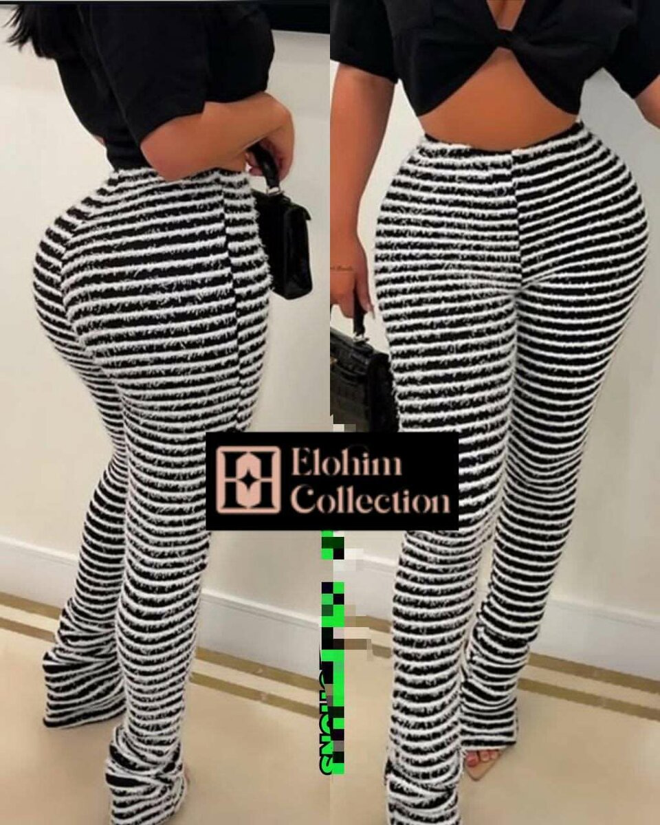 Découvrez ces pantalons rayés élégants pour femme, parfaits pour une soirée ou une tenue décontractée. Confortables et stylés, ils s'adaptent à toutes les occasions.