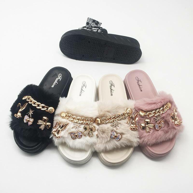 Découvrez nos pantoufles en fourrure douce avec décoration scintillante, parfaites pour ajouter une touche de glamour à votre tenue décontractée. Disponibles en plusieurs couleurs tendance, ces pantoufles sont idéales pour se détendre à la maison ou pour un look chic en intérieur. Un choix parfait pour le confort et le style.