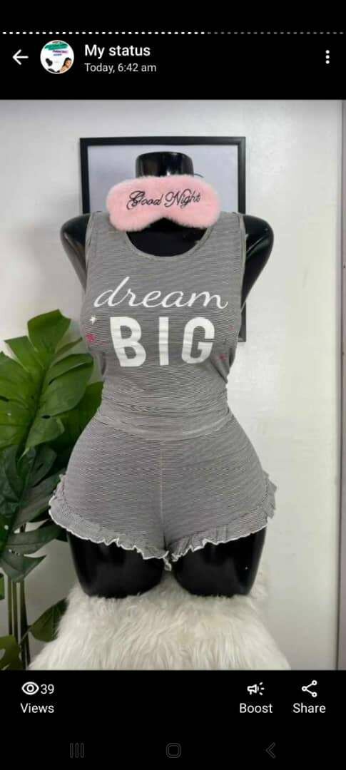 Deals in intimate apparel for men and women: panties, bras, pajamas, sleepwear, loungewears, swimwear, male boxershorts, colognes, Victoria secret splashes and lotions.