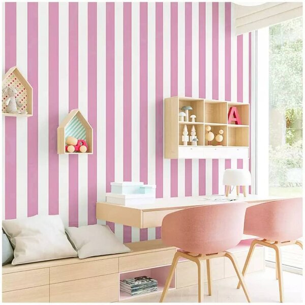 Papier Peint Rayé Rose Blanc
