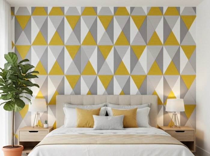 Transformez vos espaces avec ce papier peint géométrique moderne aux tons jaunes et gris. Idéal pour une touche contemporaine et vibrant, il rehausse tout intérieur, que ce soit une chambre à coucher ou un salon. Facile à appliquer et durable, parfait pour redonner vie à vos murs.