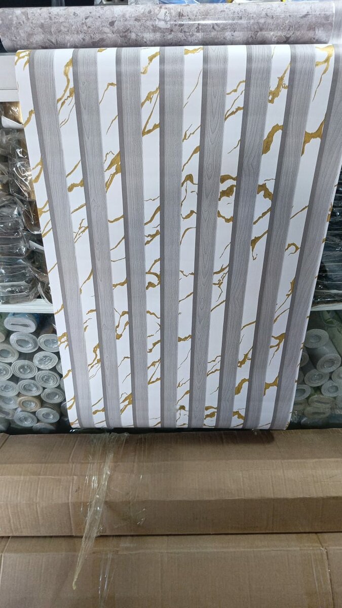 Ajoutez une touche d'élégance à vos murs avec ce papier peint à rayures marbrées dorées. Idéal pour un salon moderne ou une chambre raffinée. Facile à poser, il transformera votre espace en un rien de temps.