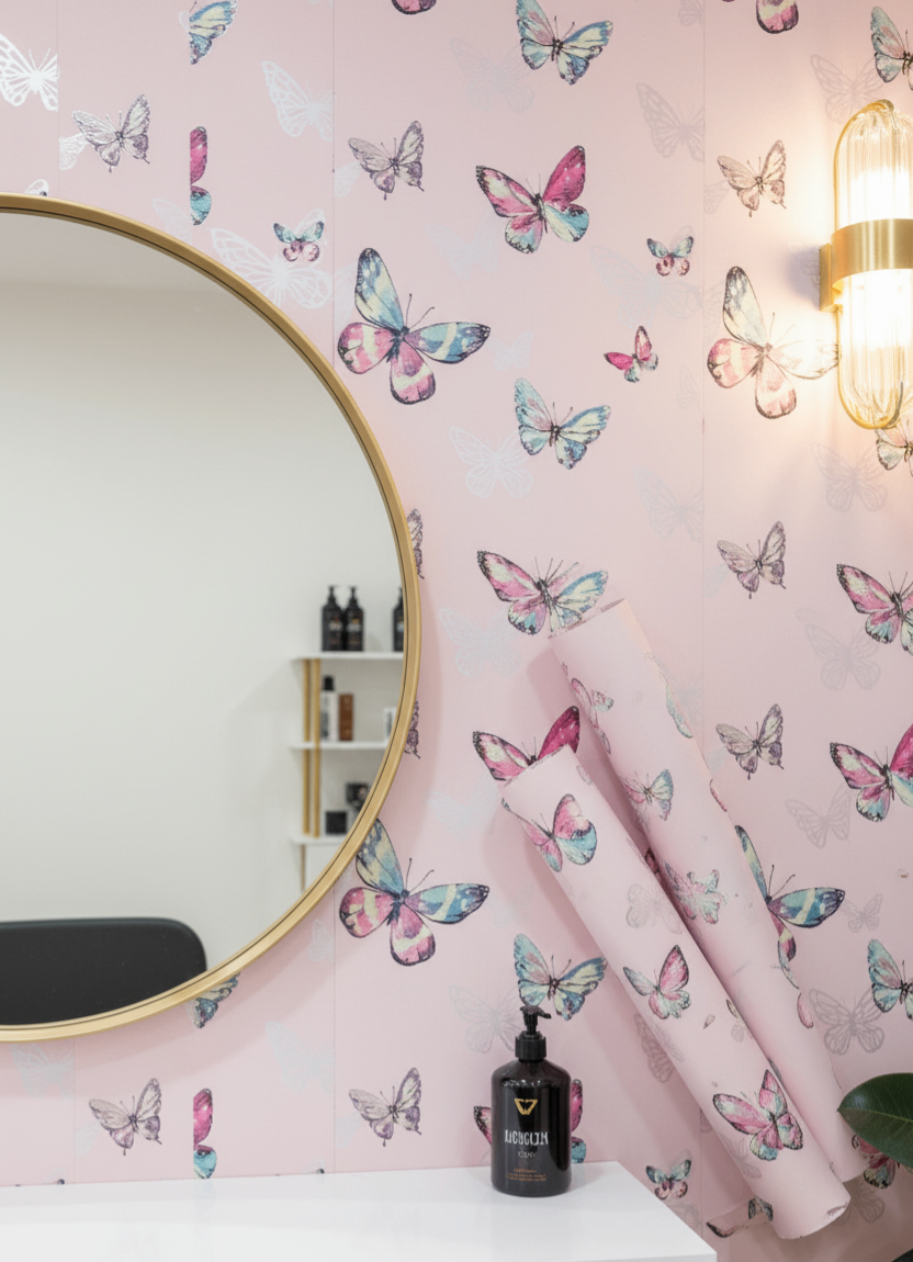 papier peint rose parsemé de papillons élégants.