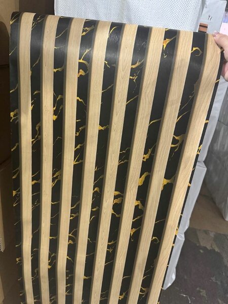 Apportez une touche moderne à votre intérieur avec ce papier peint rayé noir et bois, rehaussé de détails dorés. Idéal pour les salons, bureaux et chambres, il transforme vos murs en un véritable statement de style.