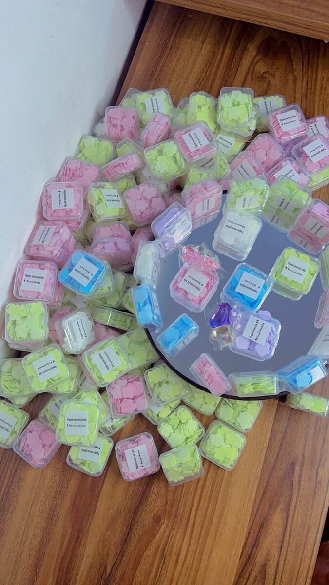 Découvrez nos papiers savons pétales colorées parfumées, idéales en tout lieu. Ces petales ajoutent une touche de couleur, fun et surtout d'hygiène dans votre quotidien.