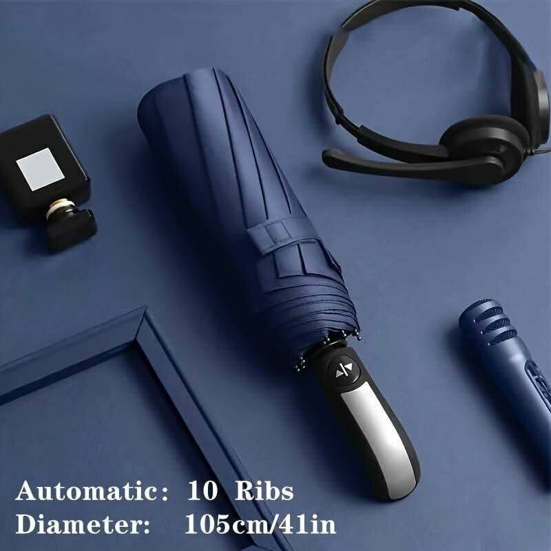 Structure résistante au vent : 10 baleines renforcées en fibre de verre qui se plient légèrement lors de puissantes rafales pour éviter que le parapluie ne se retourne et que vous ne soyez trempé.