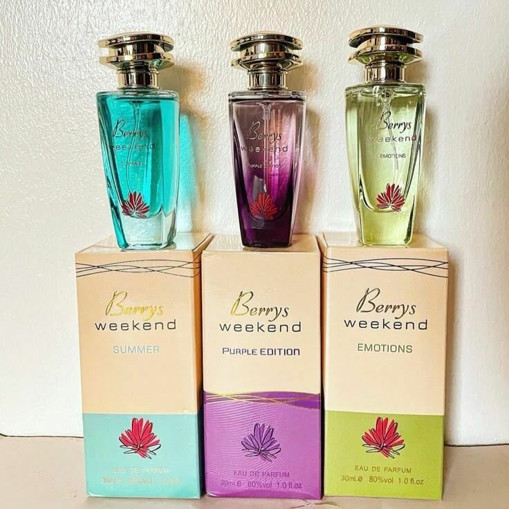 Découvrez les parfums d'exception Berry's Weekend : Summer, Purple Edition et Emotions. Parfaits pour chaque moment, laissez-vous séduire par des arômes exquis et uniques.