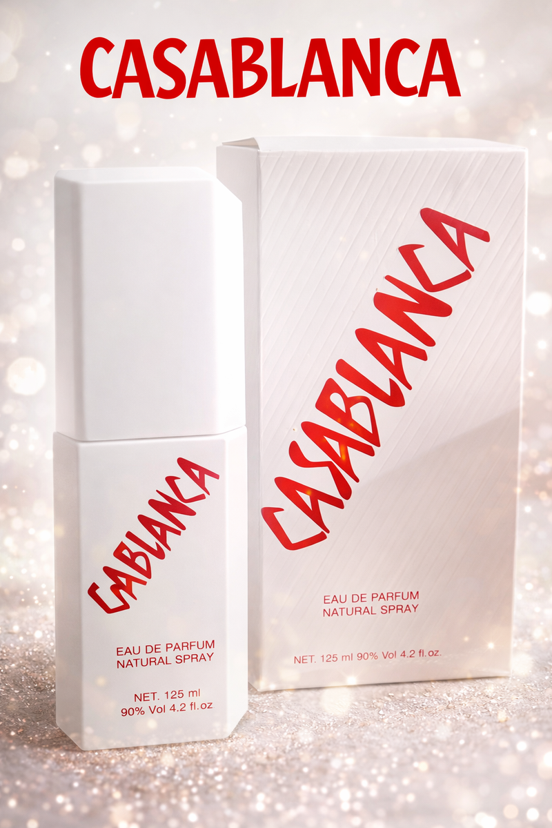 Découvrez le parfum CASABLANCA, une fragrance enivrante présentée dans un flacon élégant de 125ml. Eau de parfum naturelle en spray, parfaite pour les femmes qui apprécient la sophistication et l'élégance.