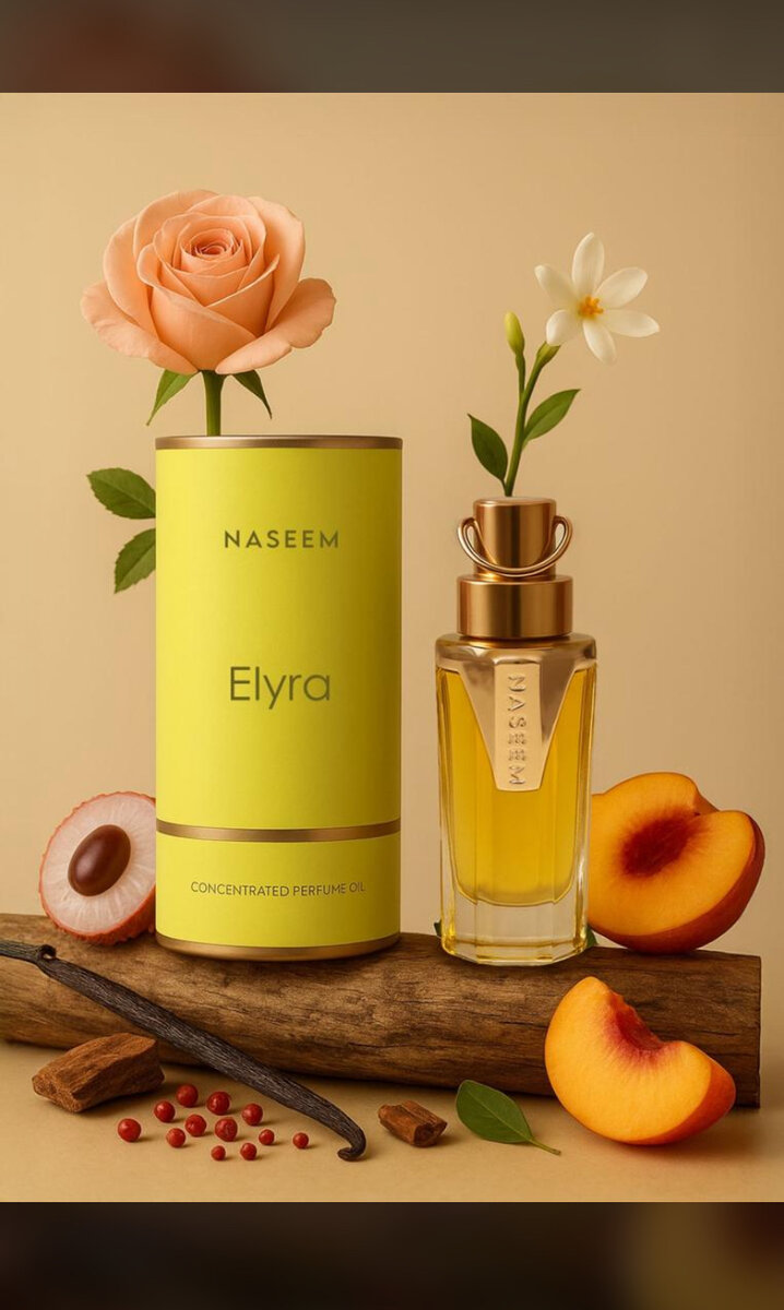 Découvrez Elyra, un parfum concentré élégant de la marque Naseem. Avec des notes subtiles de pêche, bois de vanille et fleurs exotiques, il est idéal pour toute occasion spéciale. Parfait pour ceux qui cherchent un parfum unique et raffiné.
