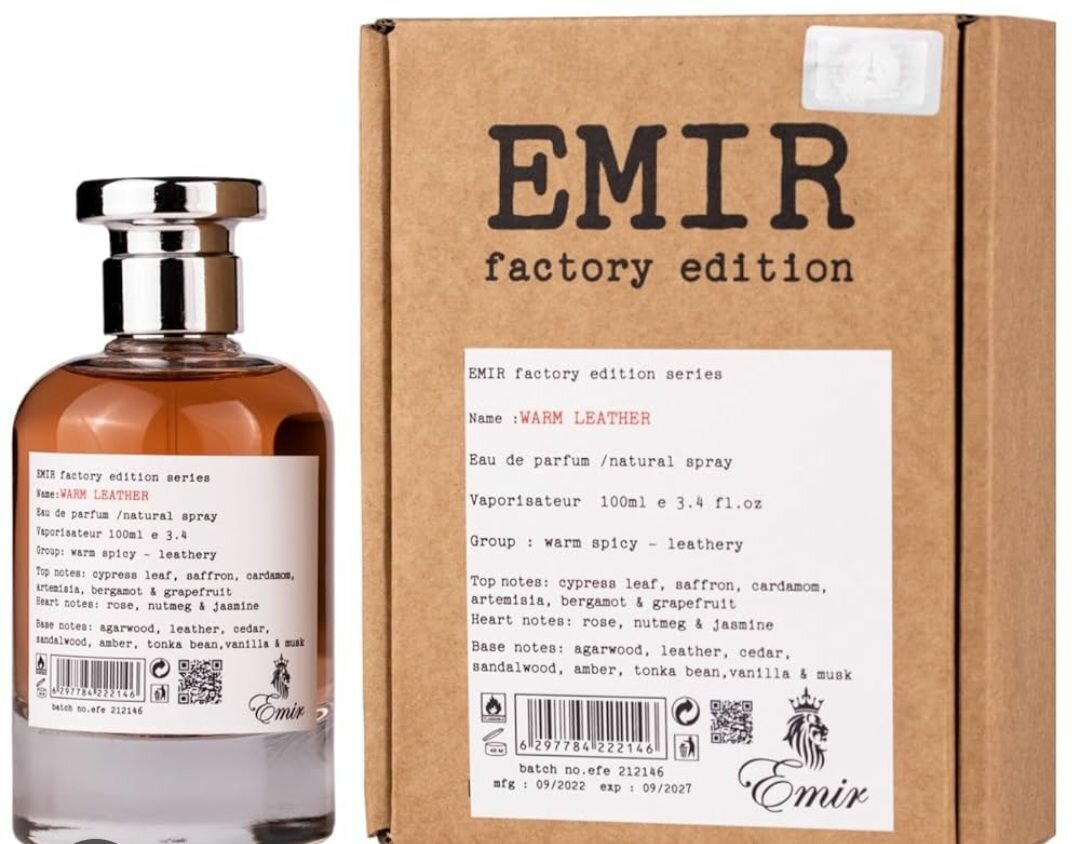 Découvrez l'intensité du parfum EMIR Warm Leather. Avec ses notes de tête de cyprès, safran et cardamome, ce parfum offre un arôme exceptionnel et épicé. Idéal pour ceux qui cherchent chaleur et sophistication. Une touche parfaite pour toutes occasions.