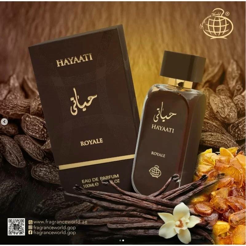 Découvrez Hayaati Royale, un parfum enveloppant de Fragrance World. Note orientale unique, idéal pour ceux recherchant élégance et caractère.
