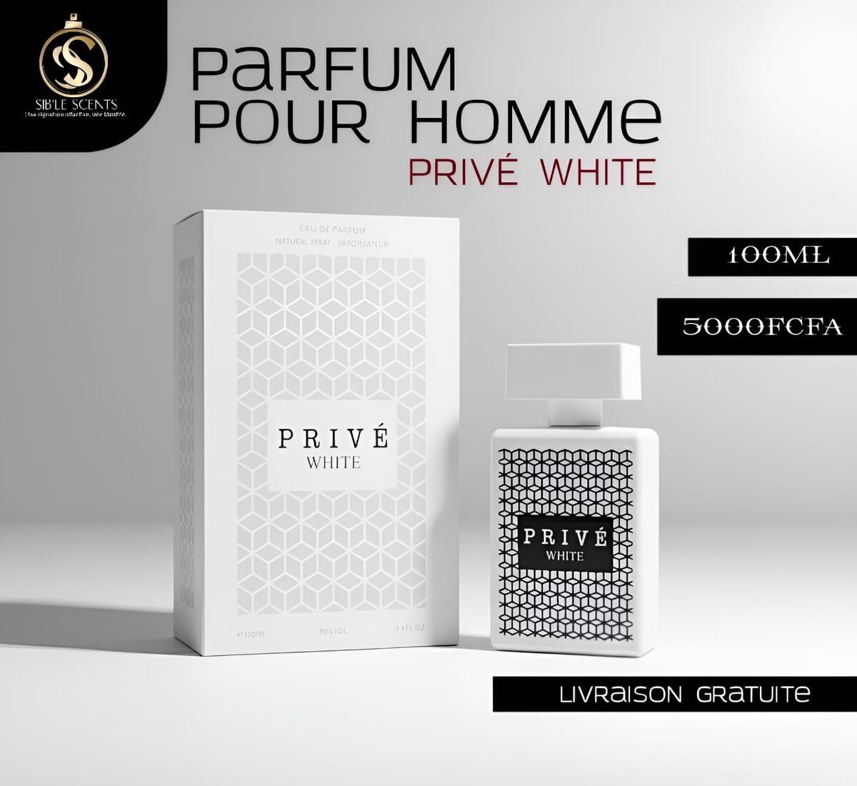 Découvrez le parfum pour homme Privé White, une fragrance élégante et sophistiquée en 100ml. Livré gratuitement.