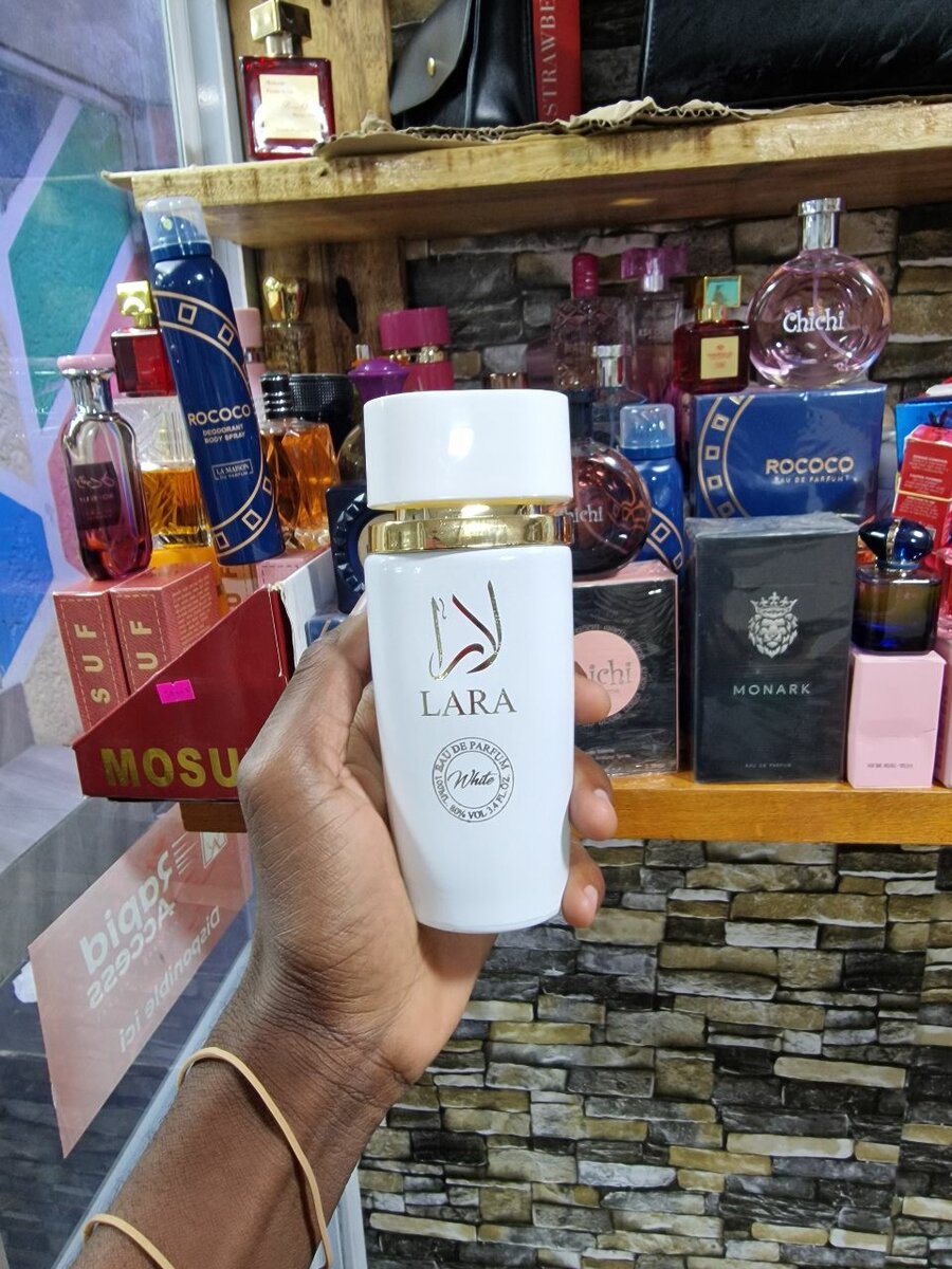 Découvrez le parfum LARA, une délicate symphonie olfactive qui séduit par ses notes aromatiques raffinées. Parfait pour les soirées élégantes ou une journée spéciale. Sa bouteille élégante et moderne s'intègre à votre collection de parfums avec classe. Idéal pour ceux qui recherchent une signature olfactive unique.