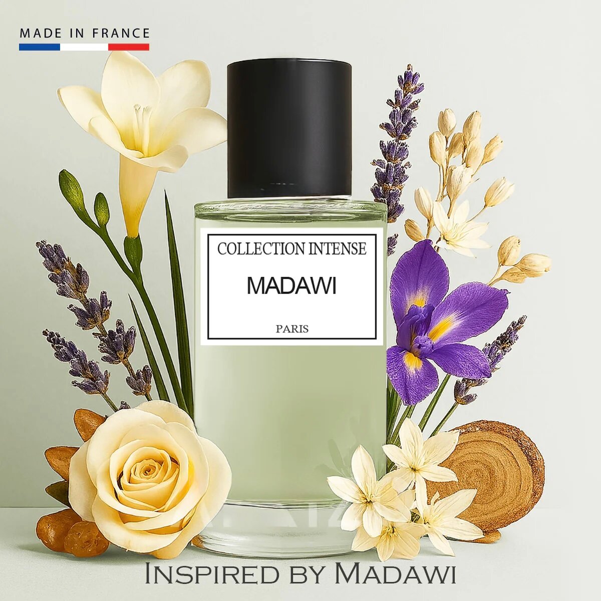 Découvrez l'élégance du parfum Madawi Collection Intense, fabriqué en France. Une fragrance envoûtante avec des notes florales et boisées, parfaite pour une touche de sophistication quotidienne. Idéal pour les soirées spéciales et les moments intenses.