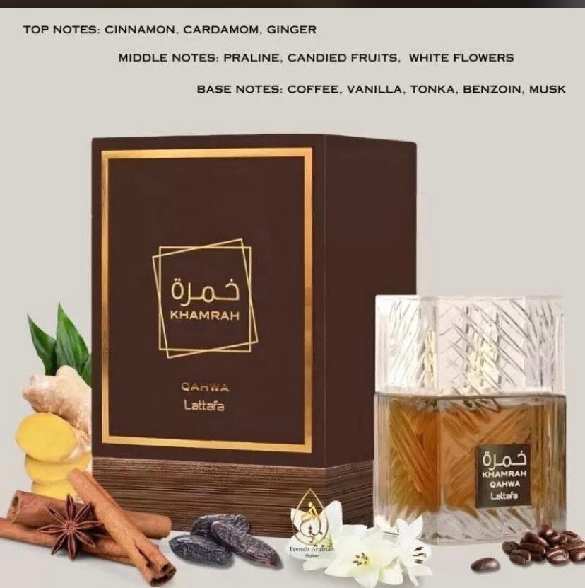 Découvrez l'élégance du parfum Khamrah avec ses notes épicées de cannelle, cardamome, et gingembre, enrichies de fruits confits et de fleurs blanches. Parfait pour une allure séduisante et raffinée.