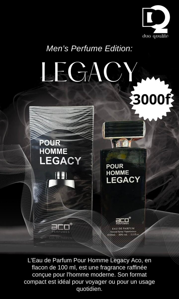 Découvrez l'élégance du Parfum Pour Homme Legacy, une fragrance moderne et raffinée de 100 ml. Parfait pour un usage quotidien ou en voyage, ce parfum incarne la sophistication masculine.