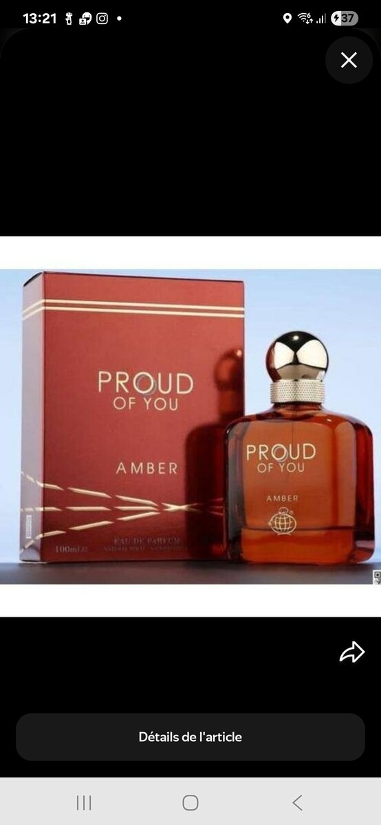 Découvrez l'élégance du parfum Proud of You Amber. Ses notes chaleureuses et envoûtantes captivent les sens et laissent une impression durable. Parfait pour une soirée spéciale ou un usage quotidien, ce parfum est le choix idéal pour ceux qui apprécient la sophistication.