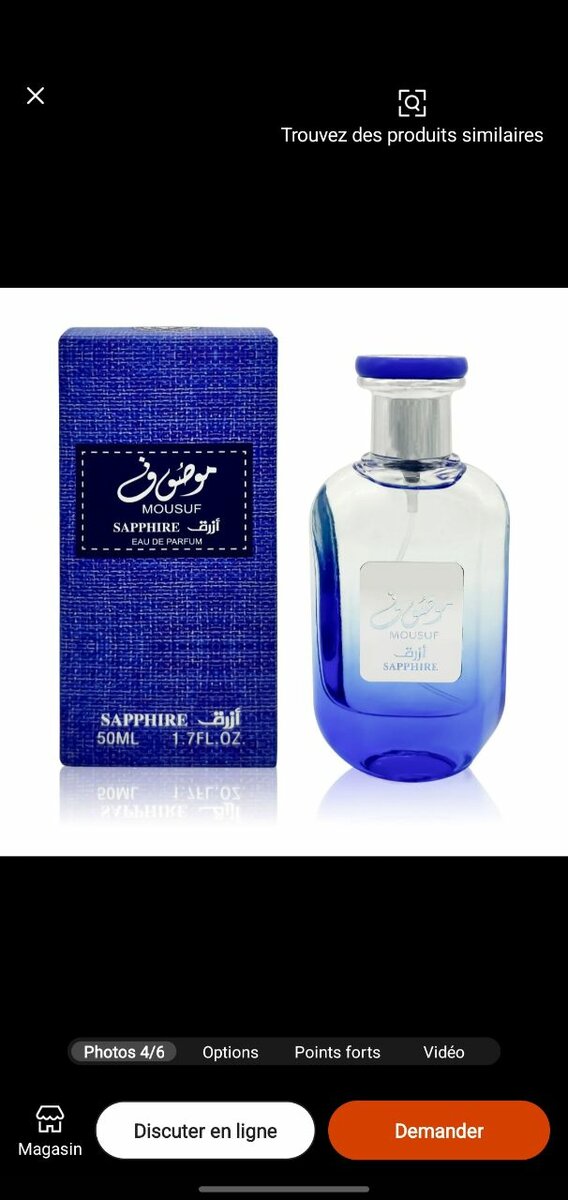 Découvrez le parfum Saphir, une fragrance élégante et captivante pour femme. Flacon de 50 ml au design raffiné, parfait pour toute occasion spéciale. Éveillez vos sens avec ce parfum exquis qui laisse une empreinte inoubliable.