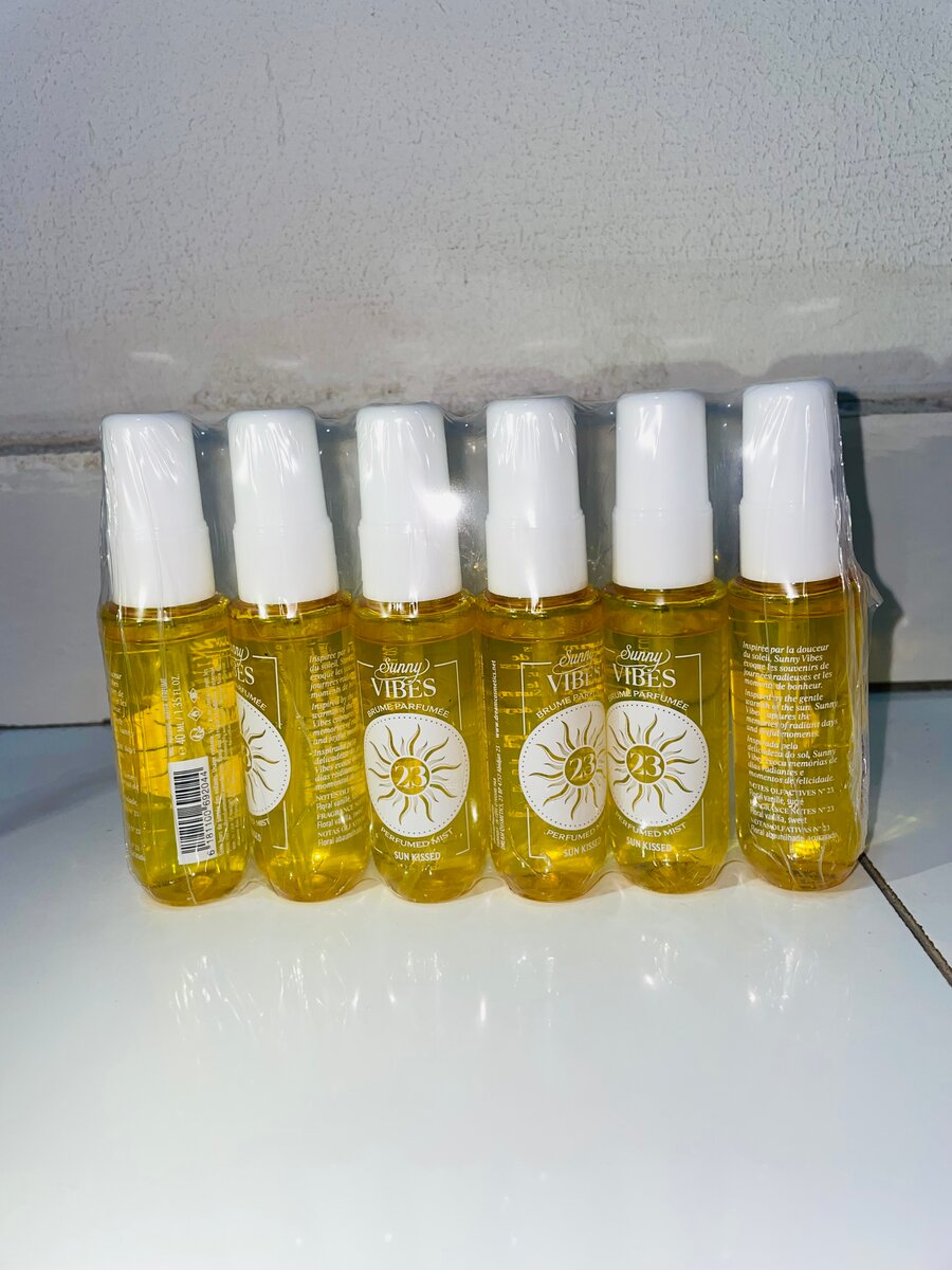 Découvrez nos mini parfums Sunny Vibes , parfait pour rester fraîche toute une journée en laissant un doux parfum. Un mini parfum de 40ml facile à transporter. ( 3000f le lot de 6 )