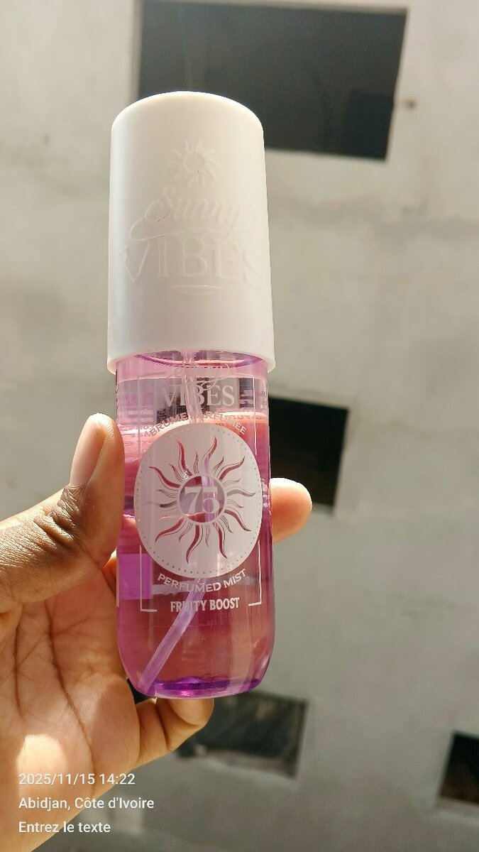 Découvrez le parfum Sunny Vibes de 100ml , une brume légère et rafraîchissante idéale pour toutes les occasions. Disponible en plusieurs arômes captivants, ce parfum est parfait pour ceux qui cherchent à évoquer une ambiance joyeuse et lumineuse. Emportez-le partout avec vous pour une douce touche de fraîcheur.