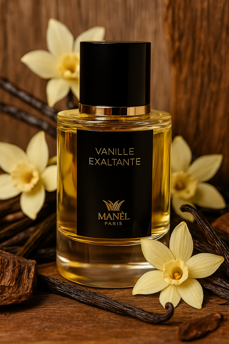Le parfum "Vanille Exaltante" est décrit comme une fragrance gourmande, chaleureuse et enveloppante, où la vanille est la note principale, soutenue par des nuances boisées, sucrées et ambrées dans les notes de tête et de fond. Il évoque une sensation réconfortante et raffinée, avec des aspects crémeux et poudrés, créant une composition olfactive sophistiquée et durable.