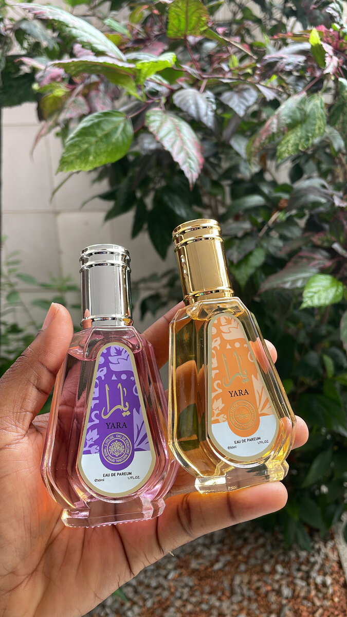 Découvrez le parfum envoûtant Yara. Ce duo exquis offre des notes florales et orientales, parfait pour une touche d'élégance au quotidien ou une soirée spéciale. Son design élégant en fait également un superbe cadeau.