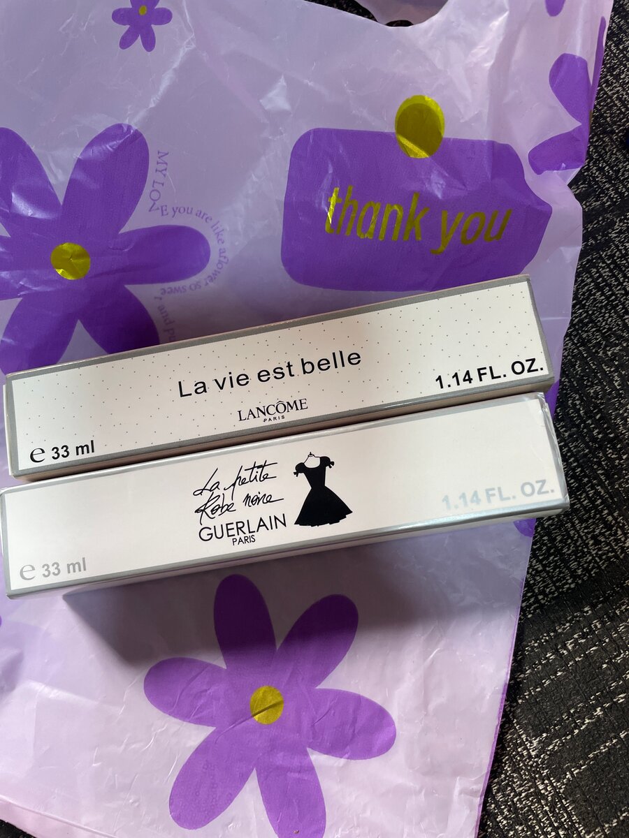 Découvrez l'élégance des parfums Lancôme 'La vie est belle' et Guerlain 'La Petite Robe Noire'. Ces essences raffinées de 33 ml sont parfaites pour toute occasion.