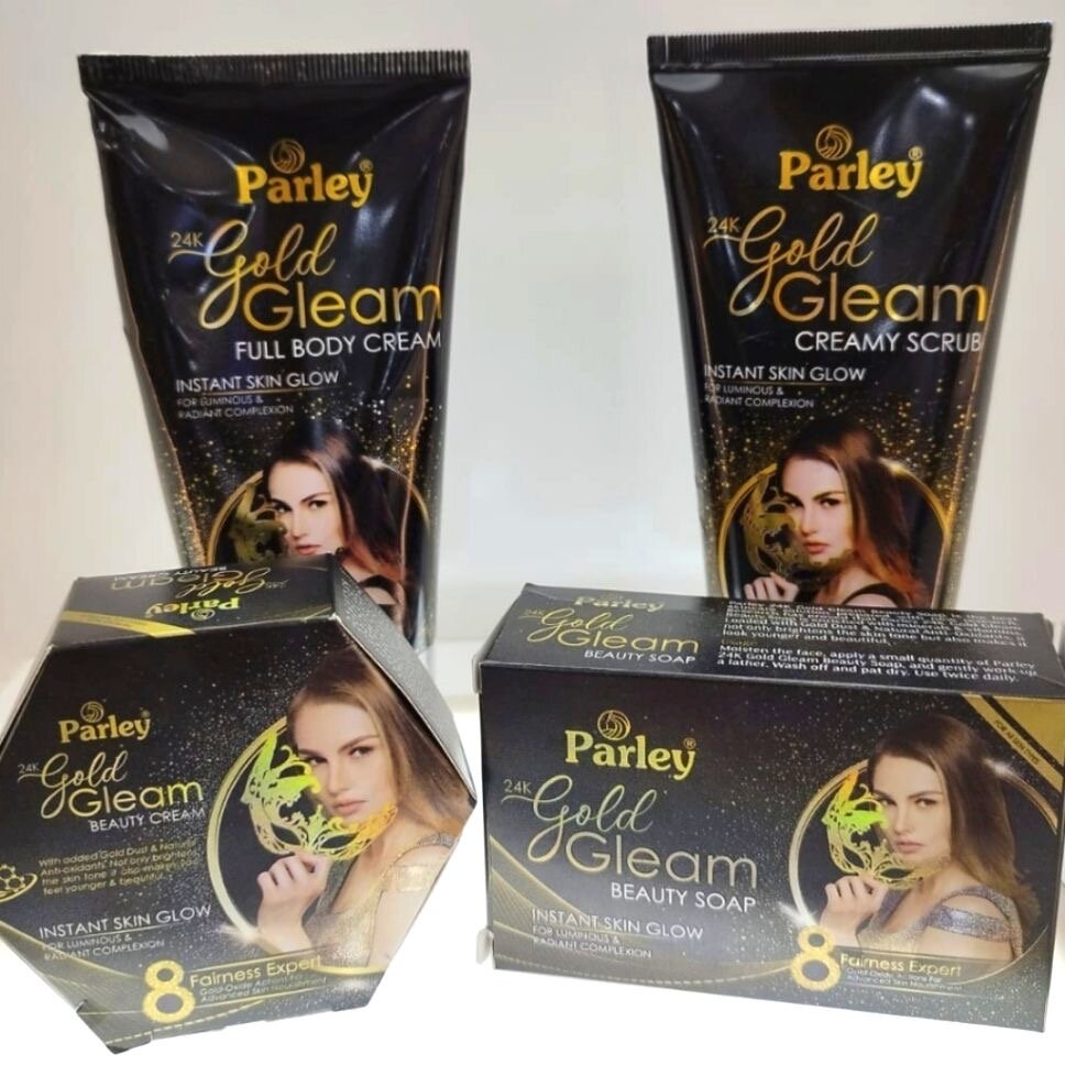 Transformez votre peau avec le Parley Gold Gleam! Ensemble complet pour une lueur instantanée et un éclat doré. Comprend crème, gommage et savon pour une routine beauté parfaite. Idéal pour une peau radieuse et éclatante.