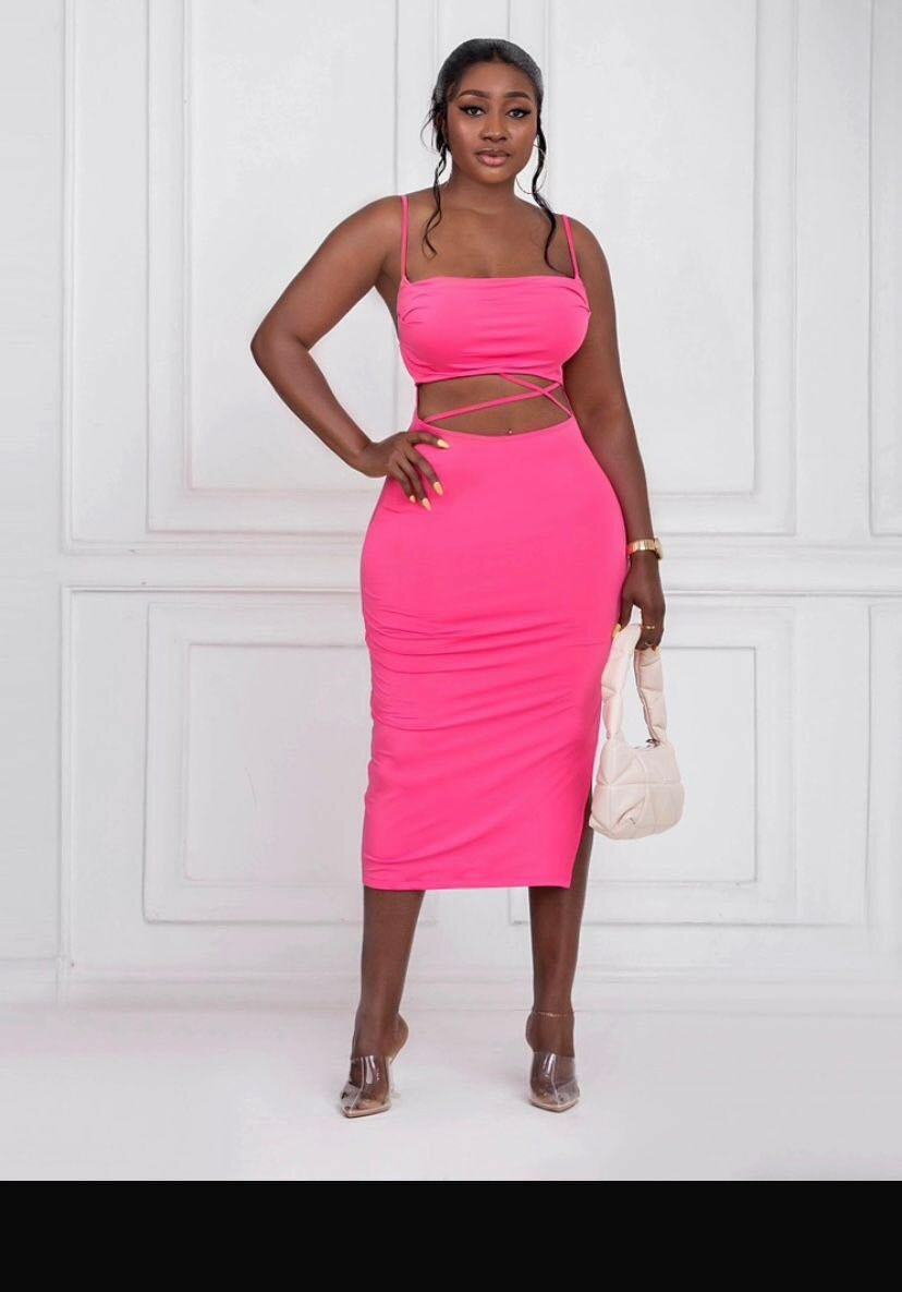 Pink is dresss with 2 piece illusion and floral is a 2 piece(skirt and top)